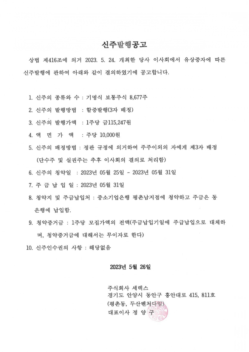 신주발행공고 페이지 정보 관리자 2026.02.19 08:46 조회 110 본문 . 다음글합병에 따른 주권 및 채권자 이의 제출 공고 26.02.19 댓글 0 댓글목록 등록된 댓글이 없습니다.