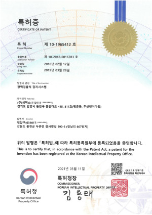 특허증(레이다를이용한 머신러닝 기반 외곽침입 탐지 시스템)